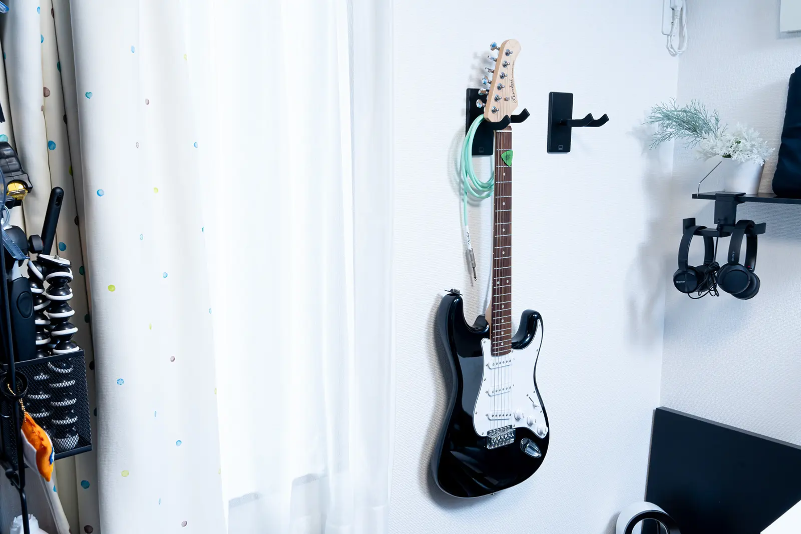 - ギターのヘッド部分を壁にぶつけないよう、位置は少し余裕を持たせるのがコツ