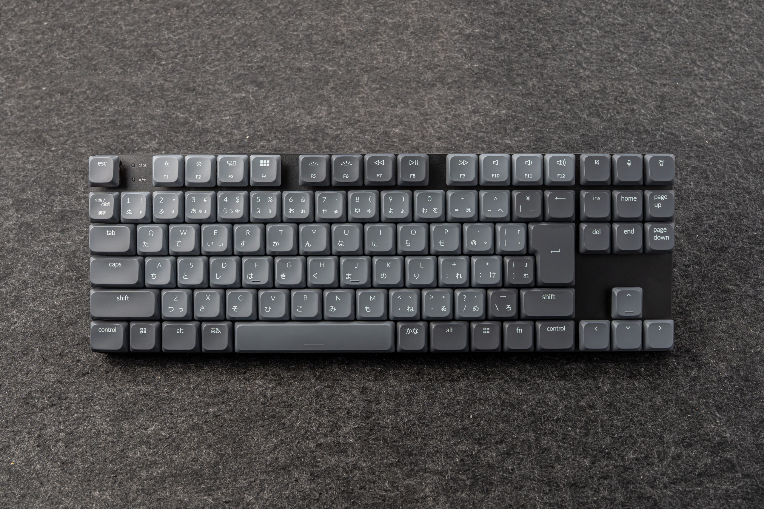 • 特徴: 80%からさらに余白を詰め、右側の特殊キー(HomeやEndなど)を縦一列に並べ替えた形。