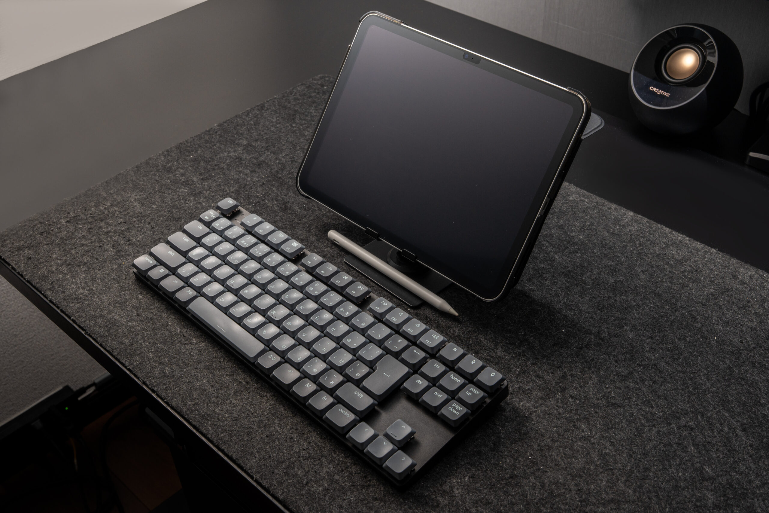 厚みが薄いので手首への負担が少ないのに、メカニカル特有の「コトコト」という心地よい打鍵感はしっかりある。赤軸の滑らかな押し心地は、長時間のブログ執筆でも全く疲れません。
