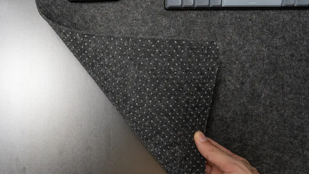メラミン化粧板の天板との組み合わせだと、日々のデスクワーク程度では全くと言っていいほどズレない。デスク上で撮影する時と掃除する時以外ほとんど動かさないから、この滑り止めはホントにポイント高いです!